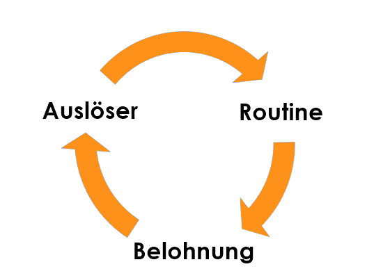 Weißt du wie eine Gewohnheit abläuft? Es gibt einen Auslöser, eine Routine und eine Belohnung. Das ist die Gewohnheitsschleife aus dem Buch „The Power of Habit“ von Charles Duhigg.