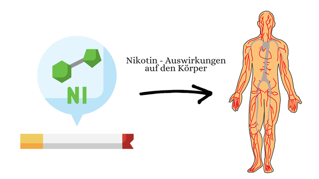 Nikotin und andere Stoffe, die im Tabak enthalten sind, werden sekundenschnell, nachdem du an der Zigarette gezogen hast, vom Körper aufgenommen. Sie werden von der Lunge aufgenommen und gelangen so in die Blutlaufbahn. Durch die Aufnahme des Nikotins werden im Gehirn verschiedene Botenstoffe ausgeschüttet, unter anderem Dopamin und Noradrenalin. Diese Botenstoffe wirken anregend, weil das Herz schneller schlägt und der Blutdruck steigt. Kurzfristig führt das zu einer höheren Leistungsfähigkeit. Außerdem wird durch die Ausschüttung von Dopamin das Belohnungszentrum aktiviert, das für ein Glücksempfinden sorgt und für den Moment alles um einen vergessen macht.